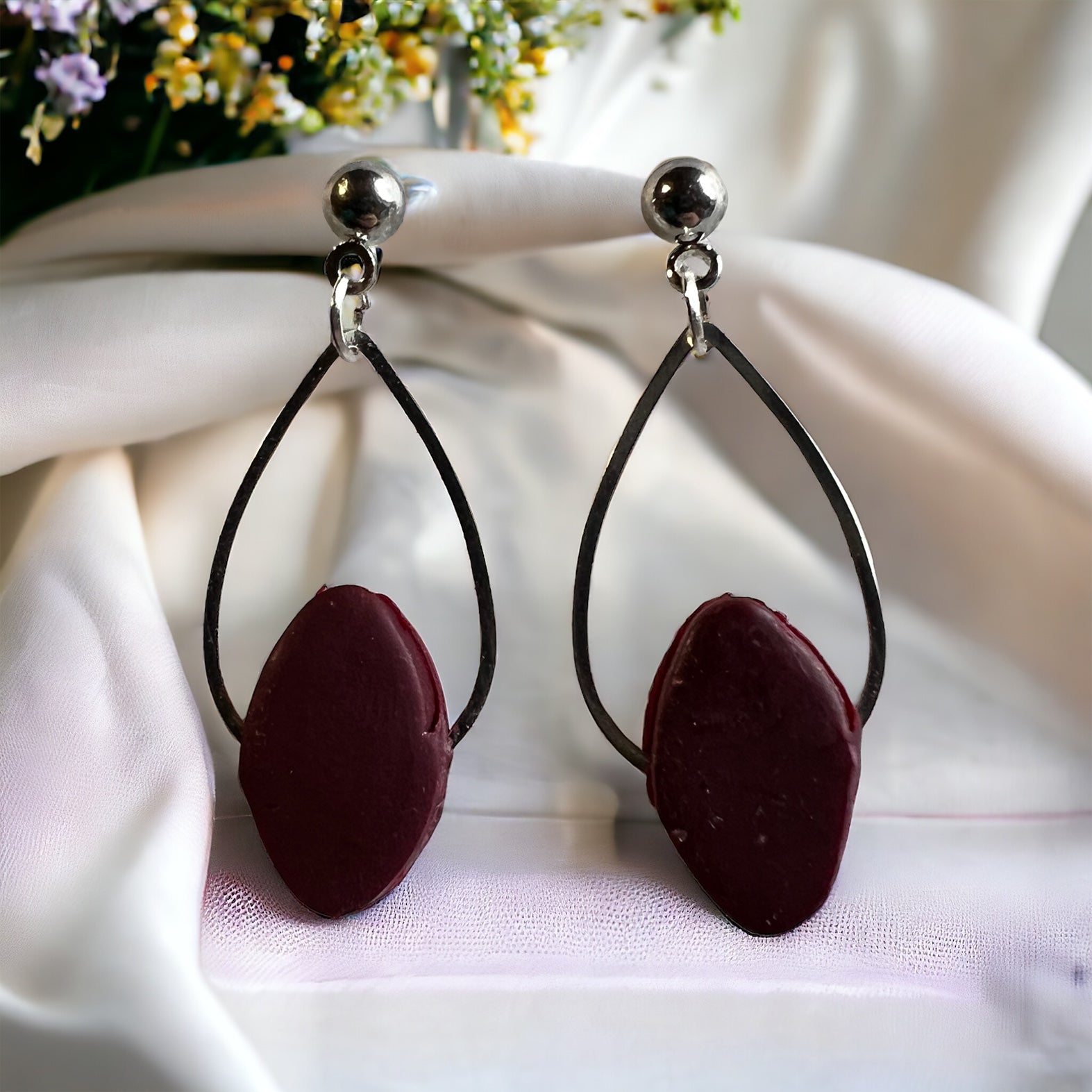 Simple tear drop metals with a clay gem accent