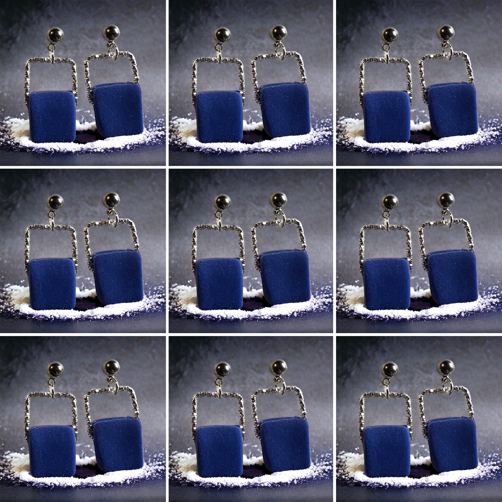 The Laura - is a mixed metal with a hammered square silver design with squared clay insert finished a stud post.